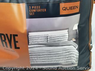 Lot #0214: 3pc Fyre Gray Queen Plush Comforter Set