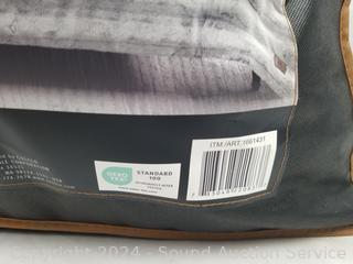 90" x 98" comforter, 20" x 30" shams. Don't see any issues.