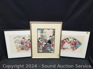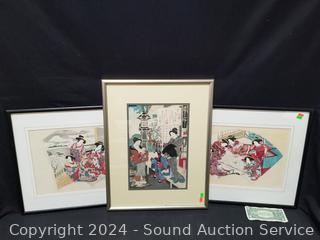 Lot #0153: 3pc Japanese Block Print? Artwork