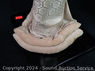 14" to 25" tall. Some discoloring from age, a few small holes in fabric.