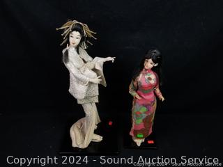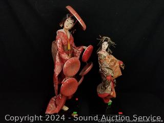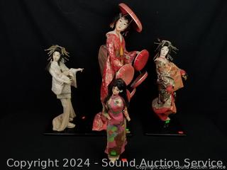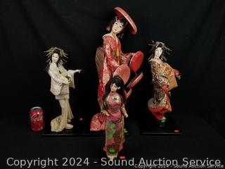 Lot #0254: 4 Vintage Handcrafted Silk Geisha Dolls
