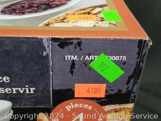 38.5oz, 3.3" x 6.2" x 11.7". One has a chip on bottom edge.