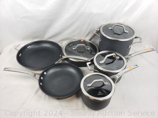 Lot #0308: 6pc Calphalon Hard Anodized Pots & Pans w/4 Lids