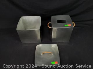 From everything I found this is very high-end luxury product, believe this pattern is discontinued. Nice, embossed makers mark on the bottom. Each piece, tissue cover, soup dish, cup, 2 covered powder dishes, vanity tray, on their website retails. for approx. $190-900. Please do your own research before bidding I may be wrong. Tissue cover | Waterworks. 15 .5" x 14" x 8.75" wastebin.