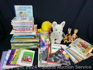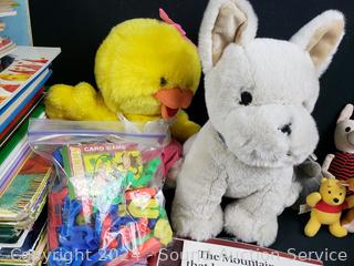 Lot #0227: Assorted Children's Books, Alphabet Magnets, Stuffed Animals