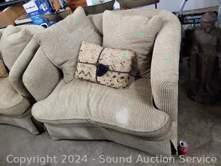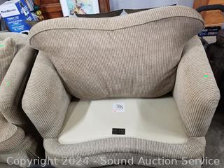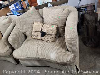 Lot #0044: Designer Down Fill Fabric Upholstery Extra-Wide Easy Chair