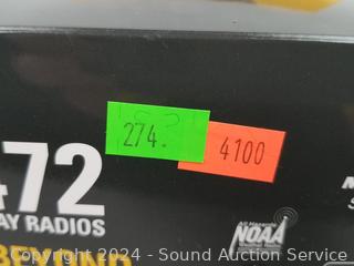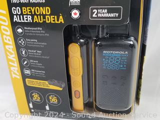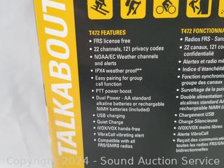 Have power, come with charging bases. Features 35 Mile Range, Weatherproof IPX4, Easy Pairing, VibraCall Alert, LED Torch, FRS License Free.