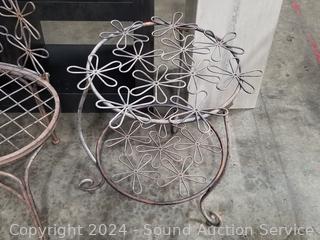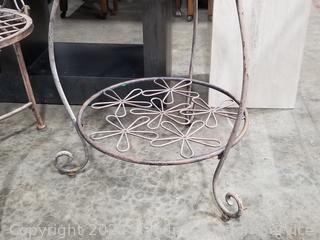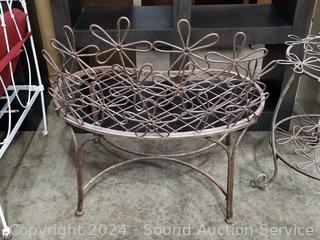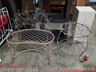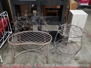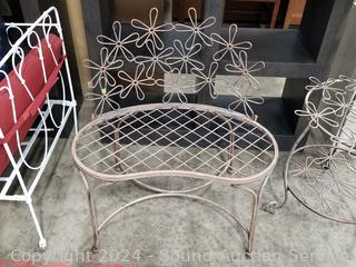 Lot #0008: Rustic Painted Finish Wrought Iron Daisy Bench & Table