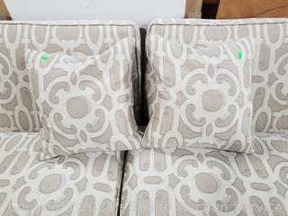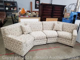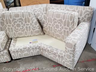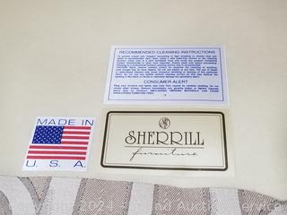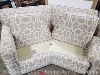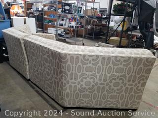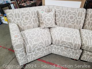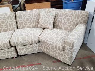 Lot #0001: Sherrill 2pc Beige Print Fabric Sectional Sofa