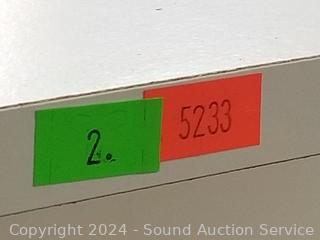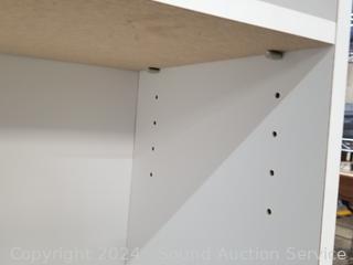 Lot #0002: White 2-Shelf Laminate Bookcases