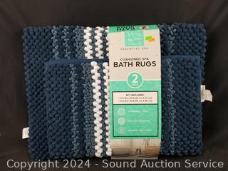 Lot #0038: 2pc Essential Spa Blue/White Cushion Bath Rugs