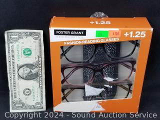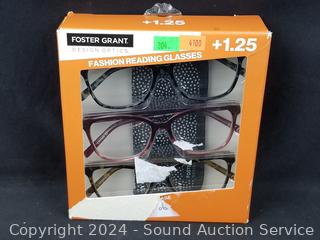 Lot #0304: 3 Foster Grant Fashion +1.25 Reading Glasses w/1 Case
