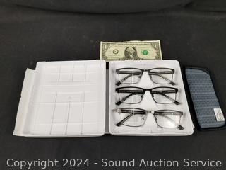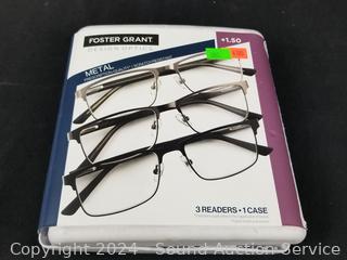 Lot #0300: 3 Foster Grant Full Frame Metal +1.5 Reading Glasses w/1 Case