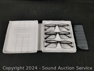 Lot #0298: 3 Foster Grant Full Frame Metal +1.5 Reading Glasses w1/Case