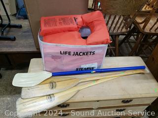 Lot #0055: 3 Paddles & 4pk of Stearns Life Jackets