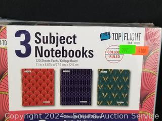 Lot #0297: 3 Sealed Top Flight Wired 120 Sheet College Ruled Notebooks