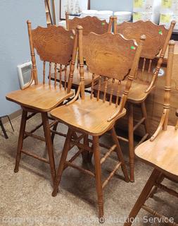 Lot #0073: 4 Oak Counter Height Swivel Chairs