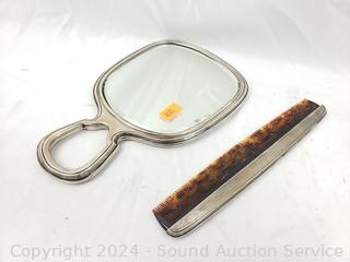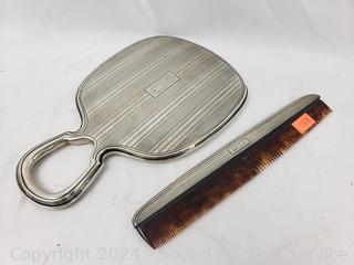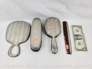 Lot #0129:     4pc Vintage Gorham Sterling Vanity Brushes, Mirror & Comb