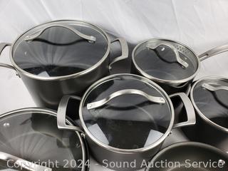 Lot #0266: 11pc Kirkland Hard Anodized Pots/Pans w/5 Lids