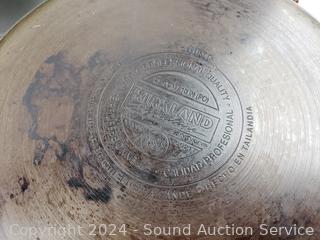 Signs of wear from use, scuffs, wear to finish. 2qt, 3qt, 4qt saucepans, 8qt boiling pot, 10" & 12" skillets.