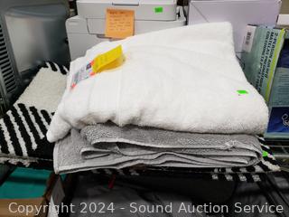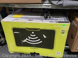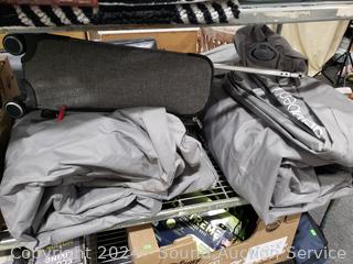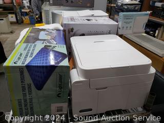 Gourmia French Door Air Fryer, (2) Epson ET-3760 All-in-One Printers (1 is not printing, shoots out blank sheets of paper, 1 paper is jamming instantly or no paper is taken and still says there is a jam), InstaCrate collapsible crate, Woozoo personal fan, LED Silver branches, lightbulbs, towels, air mattress, trash bin, 5/8" x 100ft garden hose (some kinks), packable camp chair, rug, drone. Cart not included. ATTN: Items may be missing pieces, damaged, not functioning, complete, no issues, etc. All items as is. Refer to photos for lot contents.