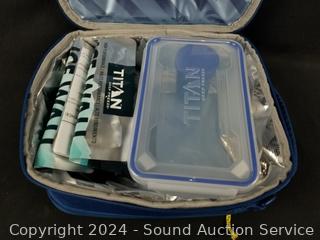 Lot #0106: Blue Titan Expandable Lunch Box w/Bento Container, 2 Ice Walls, Strap