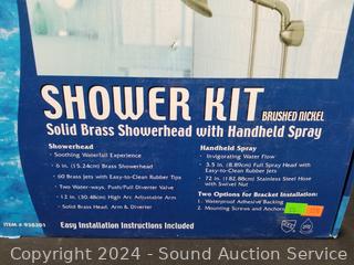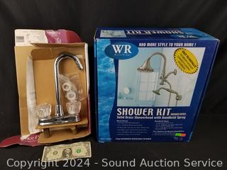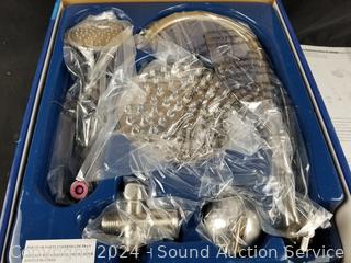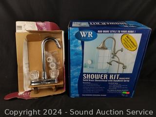 Lot #0126: Pfister Polished Chrome Gooseneck Faucet & WaterRidge Brushed Nickel Shower Kit