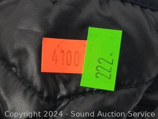 Women's puffy gloves S:Med, missing clasp to hold gloves together, don't see any other issues. Men's S:Med, don't see any issues.