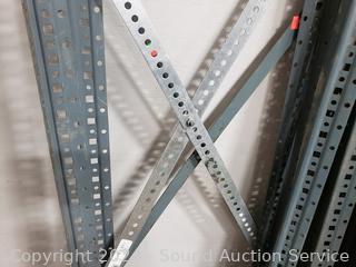 Unknown completeness. 8 vertical supports?, 11 shelves, and shelf clips. Approx. 6ft H x 4ft x 18".
