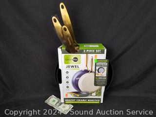 Lot #0049: 3 Green Pan Jewel Ceramic Non-Stick Frypans