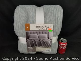 Lot #0148: 3pc Brooklyn Loom Gray King 3pc Coverlet & 2 Shams Set