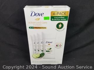 Lot #0163: 4pk Dove Cucumber & Cactus Water Antiperspirant