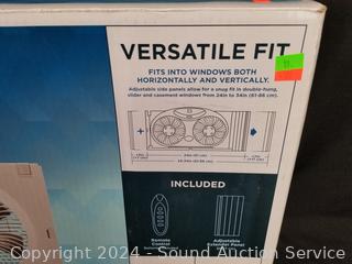 Fits windows vertically or horizontally 24" to 34". Appears to be functioning as intended with remote & extensions.