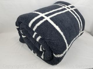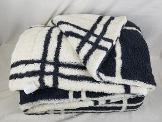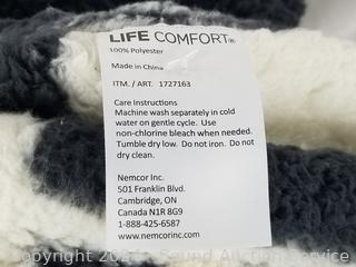 Lot #0252: Life Comfort Black/White Plush 105" x 88" Comforter