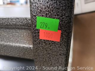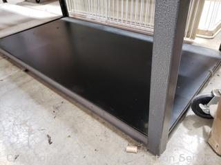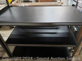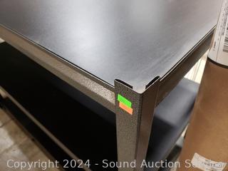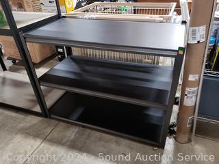 36" H x 48" x 24". Black laminated shelves. Don't see any major issues.