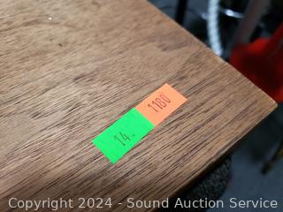 c.1986. Appear to be functioning as intended. 12" sub mounted to the front & back of mahogany? cabinets. One cabinet has some wear to the top, otherwise in great cosmetic condition. Speakers I don't see any issues, (2) 12" subs, cone tweeter & port. 35.5" H x 165" W x 12" D.