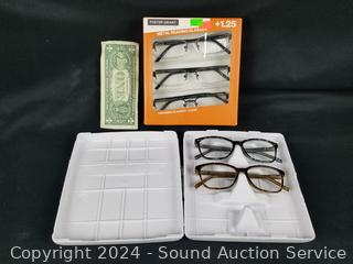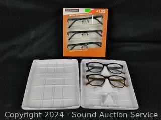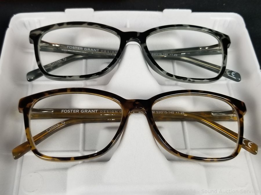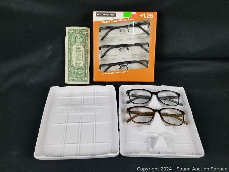 Lot #0238: 5 Foster Grant Fashion & Metal +1.25 Reading Glasses w/1 Case