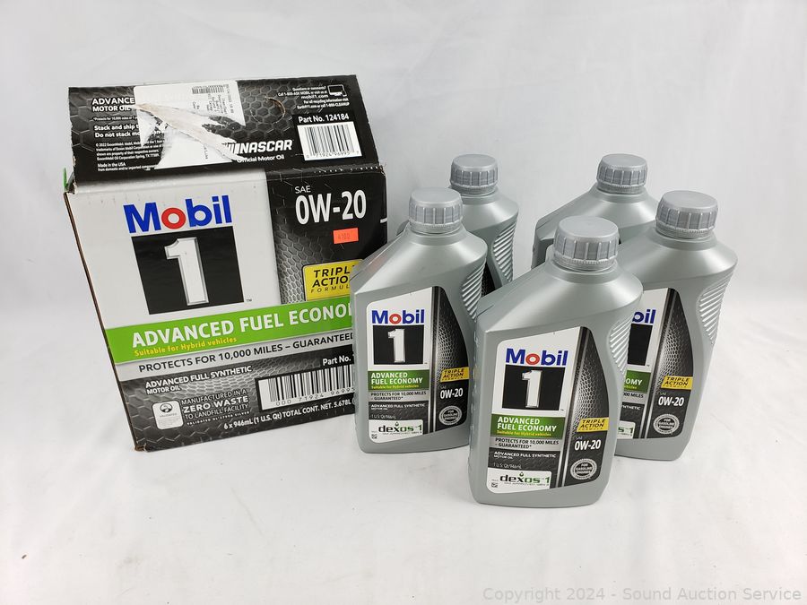 Lot #0243: 5 Mobil 1qt SAE 0W-20 Synthetic Motor Oil