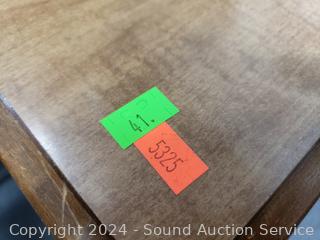 Some scuffs, scratches in finish. Appears to be solid wood construction. 31" H x 50" W x 18" to seat.