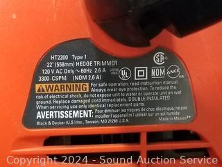 Lot #0058: Black & Decker 22" Elec. Hedge Trimmer
