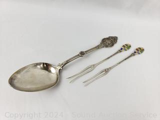 Lot #0148: Coin Silver Spoon & 2 Sterling Cocktail Forks