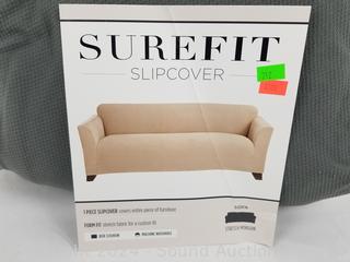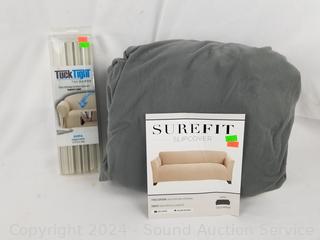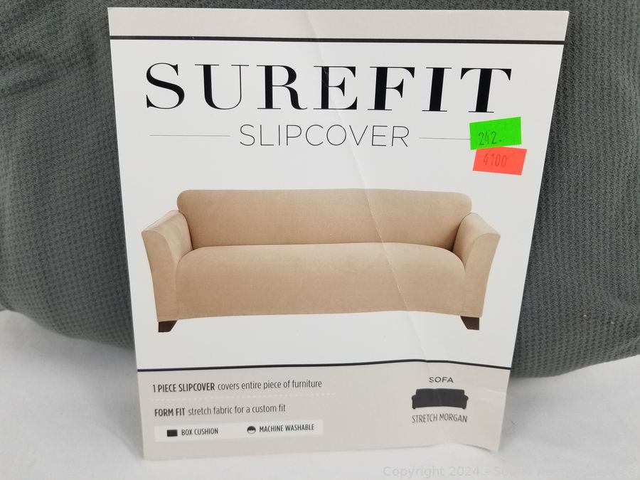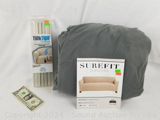 Lot #0242: Gray Stretch Morgan Surefit Slipcover w/5pk Tuck Tights