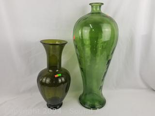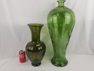 Smaller one has a Made in Spain Sticker. 16" H x 7.5" Dia & 23.5" H x 10" Dia. Don't see any issues.
