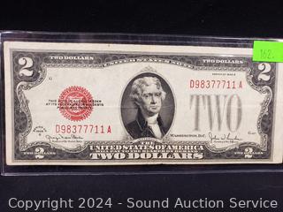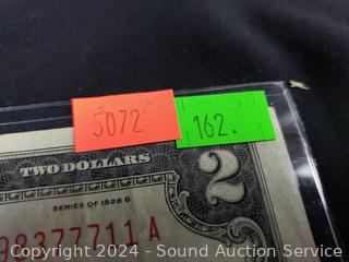 Lot #0162: Rare 1928 G-Series Red Seal $2 Note