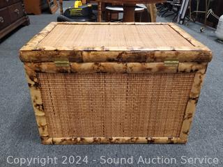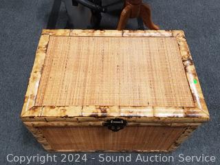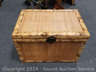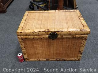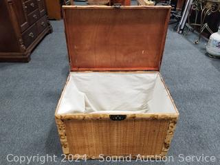 Lot #0026: Unique Linen Lined Woven Bamboo Chest