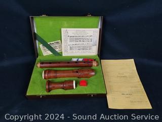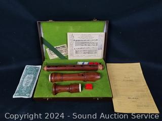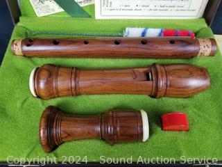 Lot #0108: Vtg. 1977 Moeck Rottenburg Rosewood & Ivory Recorder w/CoA & Case