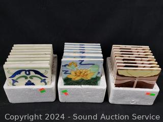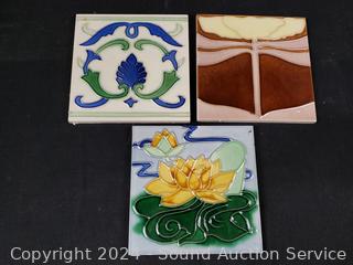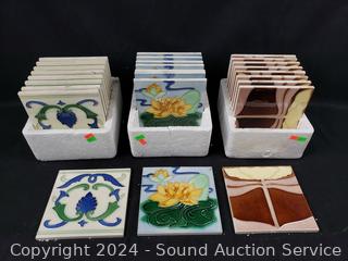 Lot #0171: 26ct 3 Types Hand Painted Porcelain 6" Tiles