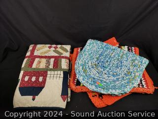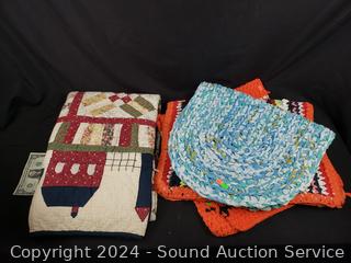 Lot #0046: 3 Woven Rugs & Small Quilt Throw