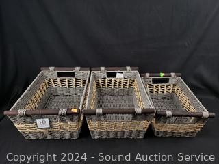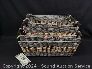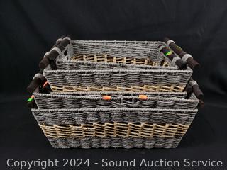 Lot #0205: 4 Nesting HD Designs Woven Basket Organizer Decor