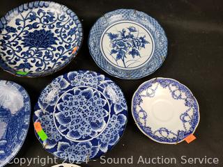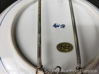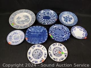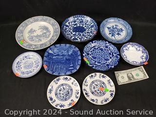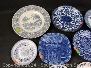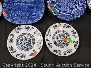 Lot #0117: 9 Vintage Blue/White China Plates w/6 Plate Hangers